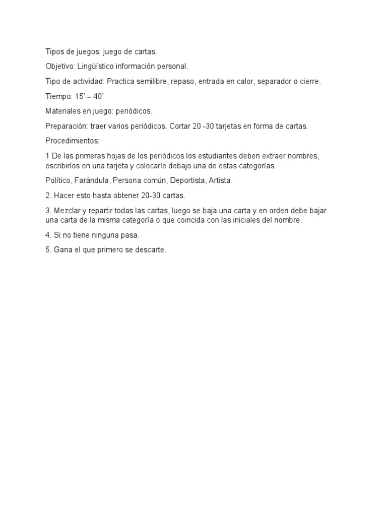 Juegos de presentación juegos de conocimiento juegos de afirmación juegos de confianza juegos de comunicación juegos de cooperación juegos de definición con la inicial del nombre de cada uno, consiste en decir nombre y adjetivos, cualidades,.